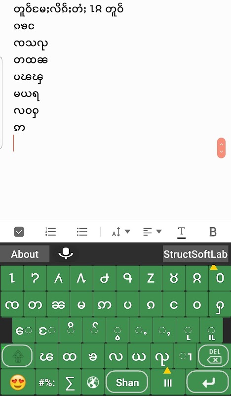 Mijn unicode-toetsenbord kan spraakinvoer ontvangen in het Engels (VS). Veel unicode emotionele, diverse symbolen en pictogrammen zijn nu klaar om te worden ingevoerd. Myanmar unicode-ingangen zijn al gecontroleerd.