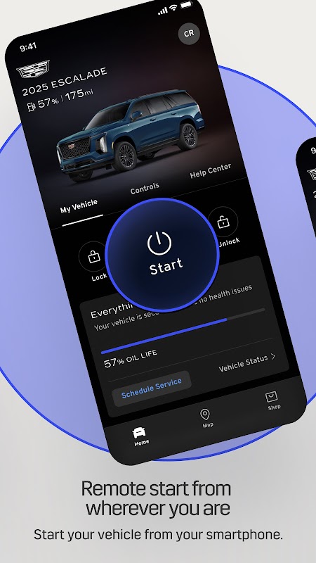 Geniet van de luxe van voertuigcontrole binnen handbereik met de myCadillac-app, verbonden door OnStar. Start uw auto, stel uw ideale cabinetemperatuur in en meer, rechtstreeks vanaf uw telefoon. U kunt uw voertuig ook gemakkelijk vinden en een looproute naar de locatie krijgen. Houd bovendien uw brandstofniveau, bandenspanning, olielevensduur en kilometerteller bij. U kunt zelfs met één druk op de knop een onderhoudsbeurt plannen en Pechhulp aanvragen. Download de app die eigendom steeds beter maakt. Nu downloaden.