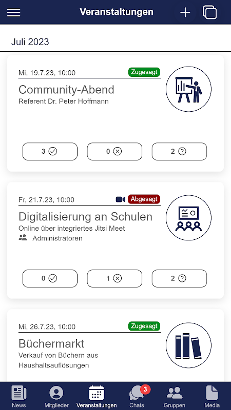 Organiseer uw gemeenschap volledig digitaal: publiceer nieuws en digitale ledenmagazines, beheer alle ledengegevens, creëer project- en werkgroepen, organiseer evenementen met aanvaardingen en afwijzingen, wissel ideeën uit in individuele, groeps- en gemeenschapschats Zorg ervoor dat alle documenten gereed zijn, maak een fotoprikbord en nog veel meer...