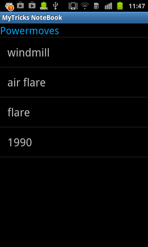 Deze applicatie kunt u uw breakdance trainingen te verbeteren, door het opslaan van al je trucs ingedeeld in categorieën. Hoe meer je traint, hoe beter je wordt!