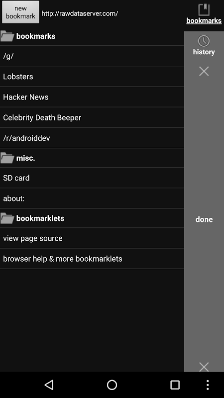 • Veeg naar rechts -> om bladwijzers / geschiedenis weer te geven. Druk lang op bladwijzers / geschiedenis om te bewerken.