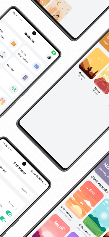 Namaz wagty, kybla, tesbih, kitaplar, dogalar
