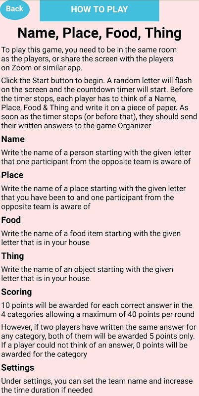 • Name Place Food Thing (NPFT) Game screenshot 2