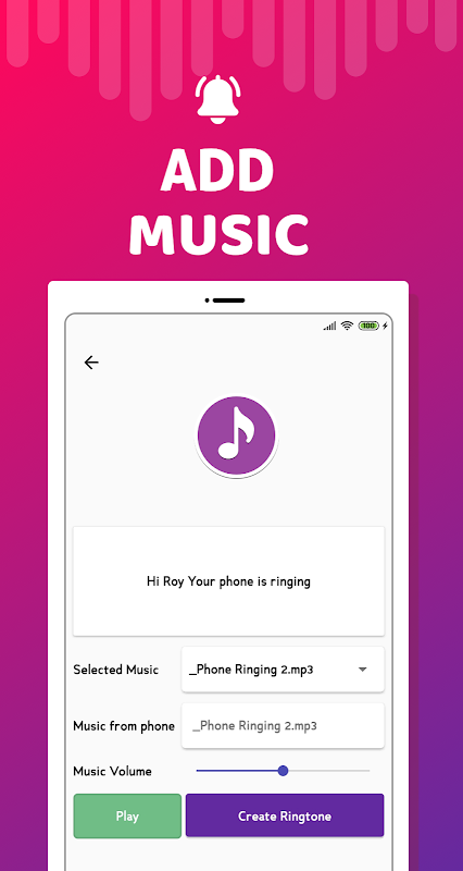 Hoe u aangepaste beltonen in het Hindi kunt maken, kunt u het apne naam ki-ringtone noemen: klik op de knop Toevoegen op de app-pagina van de naam ringtone maker. Kies je taal en voeg teksten toe. Ga terug naar de vorige pagina en gebruik je eigen tekst als ringtone.