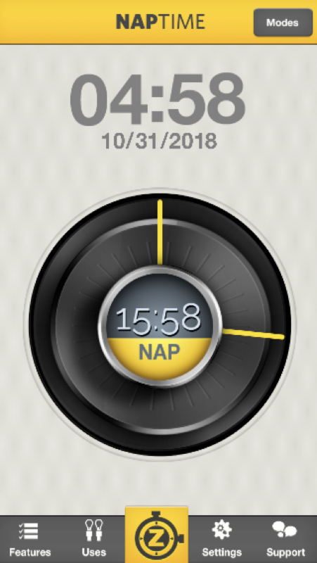Three modes: timer, nap, and stopwatch.
