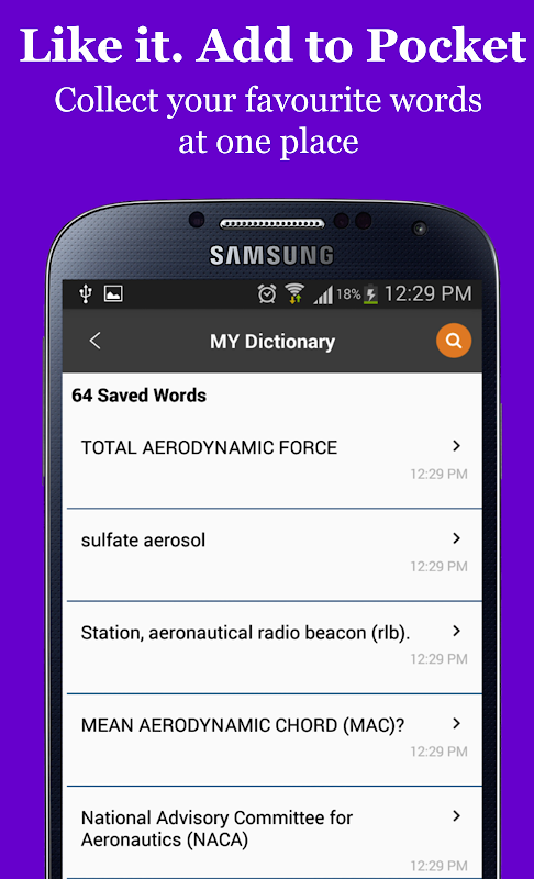 It contains more than 18,000 word meanings from every branch of aerospace engineering with hourly updates of new words. It will be your handbook of Engineering Guide and always there for help, download and use this engineering dictionary app for better and fast learning.