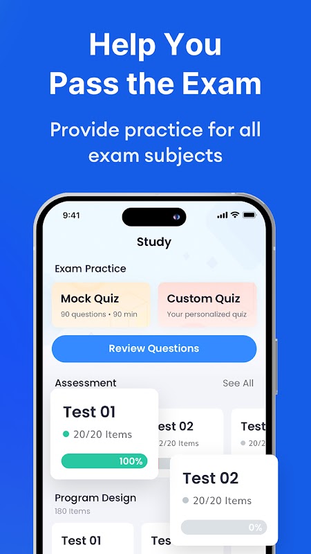 Help u bij de voorbereiding op het NASM CPT-fitnessexamen en slaag voor uw eerste poging op het daadwerkelijke examen! Gebruik de mobiele app NASM CPT Fitness Practice 2025, ontwikkeld door onze examenexperts, om u voor te bereiden op het examen en uw zelfvertrouwen te vergroten.