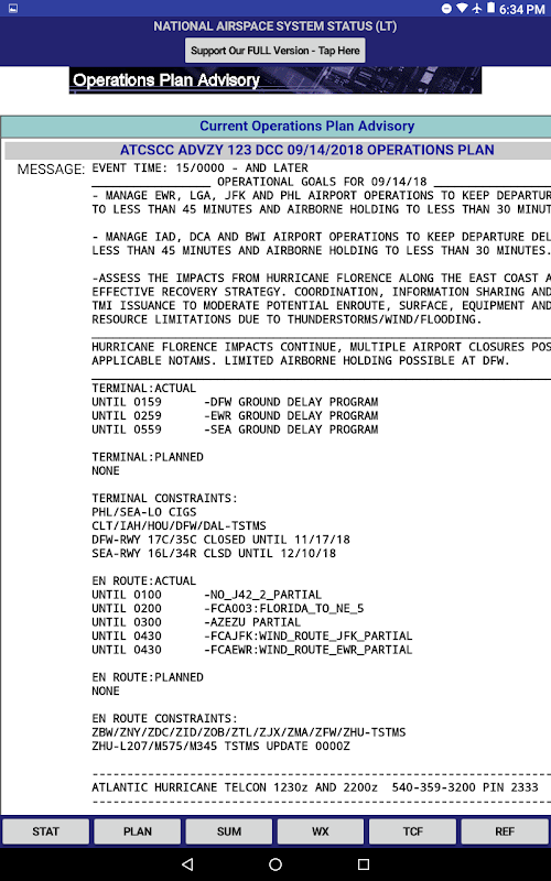 While there are many Flight Tracker apps available, this app provides a collection of links and resources providing real-time status of the US National Airspace System. Information and links are derived from the AIR TRAFFIC CONTROL SYSTEM COMMAND CENTER (ATCSCC) web page as well as other government aviation sources.