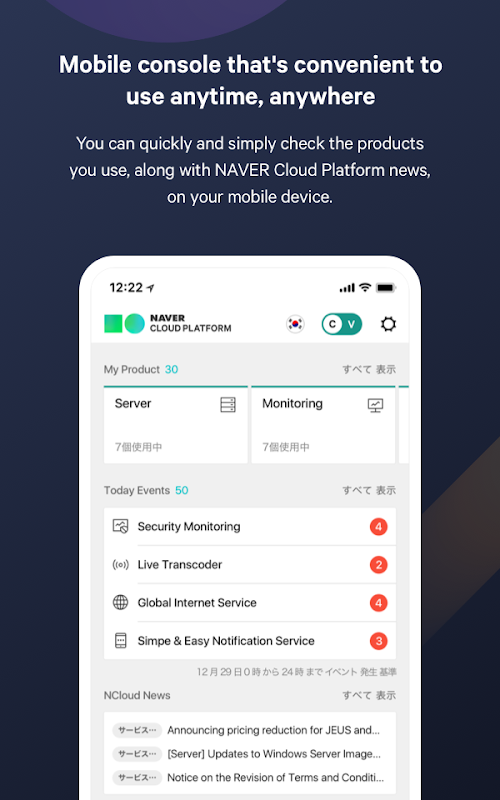 Manage cloud services conveniently with the NAVER Cloud Console app, optimized for mobile environments, anytime, anywhere.