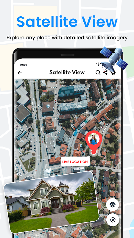 GPS satellite map app uses GPS route planner to display updates on the surrounding area with live street view maps, and it offers updates on traffic maps, road closures, and other things that may affect travel so you can find accurate road directions to reach your destination..