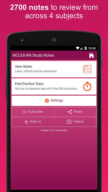 NCLEX RN Study notes App and Our companion app "NCLEX RN Practices Exams pro" contains over 2700 NCLEX study notes & 3500+ Practice exam Quizzes respectively. They are essentials for every NCLEX candidates.