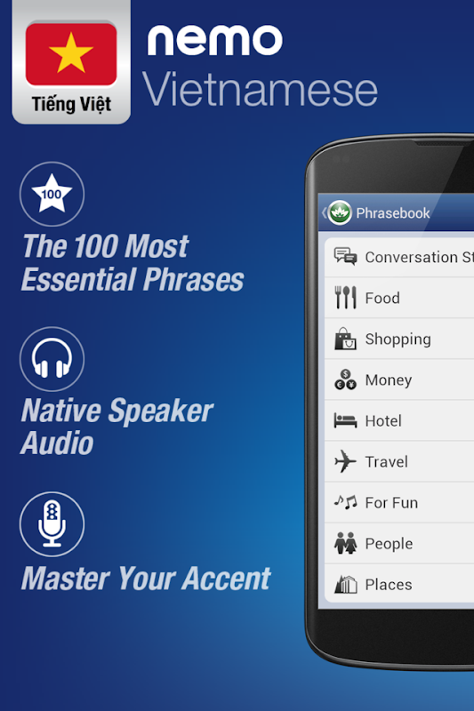 Nemo is ontworpen om te beginnen met u spreken van de meest nuttige woorden in het Vietnamees onmiddellijk en vol vertrouwen. Met miljoenen downloads uit de hele wereld, Nemo is nu beschikbaar voor Android-telefoons en tablets.
