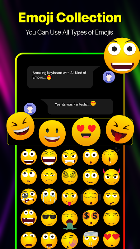 LED Neon Black emoji-toetsenbord is het slimme en gepersonaliseerde toetsenbord. Thema's), Toetsenbord 𝔽𝕠𝕟𝕥𝕤, verschillende toetsenbordachtergronden, geluiden, GIF's en stickers waarmee u uw aangepaste toetsenbord kunt versieren. RGB-verlichting Kleurentoetsenbord - zo'n krachtig toetsenbord wordt geleverd met RGB-verlichting. Je kunt letters veranderen tijdens het typen met een RGB-verlichtingstoetsenbord. Maak nu RGB-verlichtingstoetsenborden op maat met nieuwe effecten, knopstijlen, RGB-kleurcodes en nog veel meer.