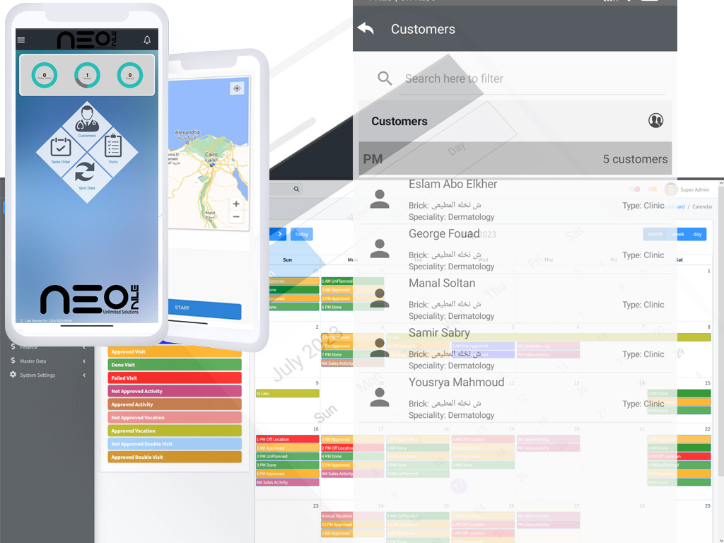 NeoNile.NET CRM Is een applicatie voor farmaceutische bedrijven die de dagelijkse bezoeken en activiteiten van vertegenwoordigers beheren.