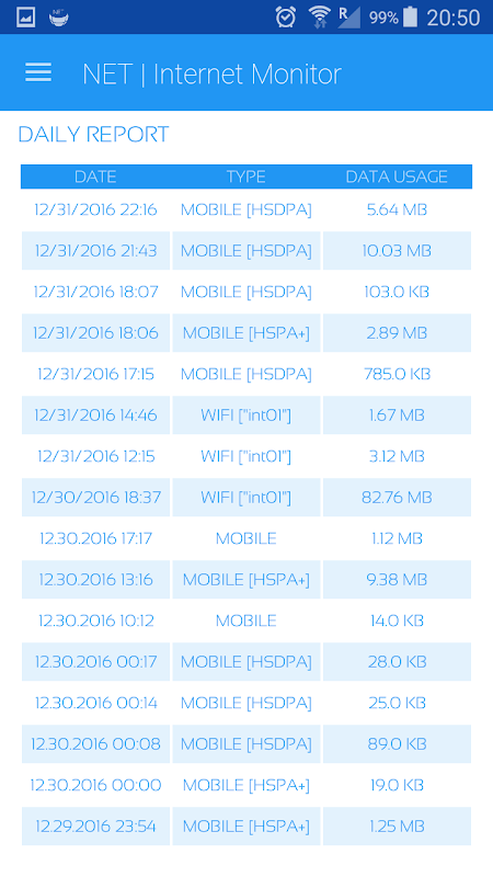 - Monitor WiFi, GSM, CDMA dataverbruik