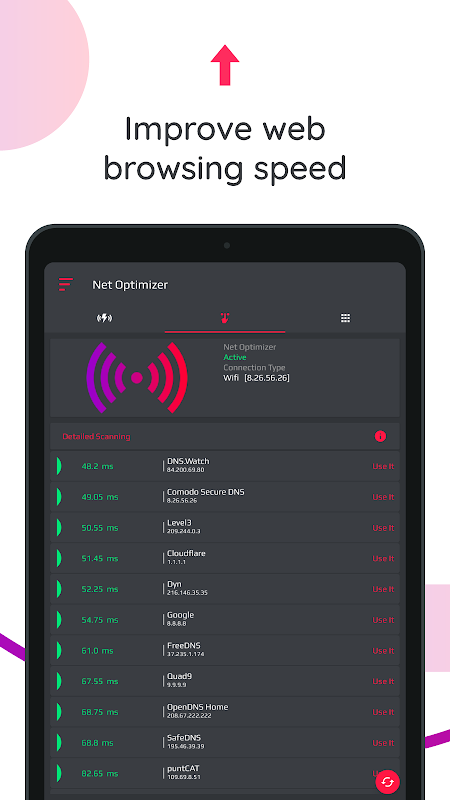 Maak verbinding met de snelste DNS-server met snelheidstest. Optimaliseer de internetsnelheid.