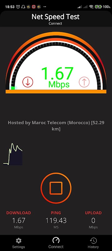 ✔ Detailed speed test information and Real-time graphs show connection consistency.