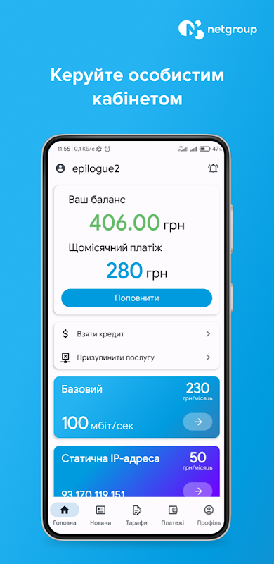 De mobiele applicatie Netgroup is een handig hulpmiddel voor Netgroup-klanten om hun account te beheren.