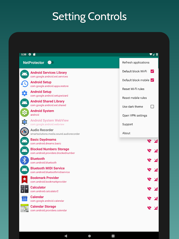 Firewall MET N O ROOT. Hostname / domeinnaam filtering, eenvoudige interface, fijnmazig toegangsbeheer en geen verdachte rechten op de firewall-app zelf. Toepassing wordt beperkt met gebruikersbeheer . Het verbetert de beheersbaarheid van privacy, gegevensbescherming , gegevensbeveiliging , netfiltering. Android-FireWall no-rooten applicatie is een Appguard van netto controle, data controle, gegevens tracker, macht guard. Applicatie met behulp van materiaalontwerp aantrekkelijke gebruikersinterface , die zeer gebruiksvriendelijk en geschikt is voor zowel beginnende alsgevorderde gebruikers. Toegang functie Zichtbaarheid van iedereen makkelijk te navigeren van deze AppGuard / appnet geen beworteling Application.