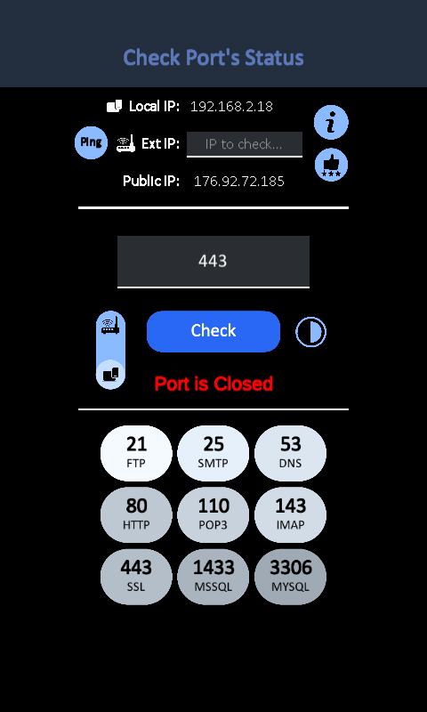 U kunt deze app gebruiken om open poorten op uw verbinding te detecteren en uw IP-configuratie te controleren.