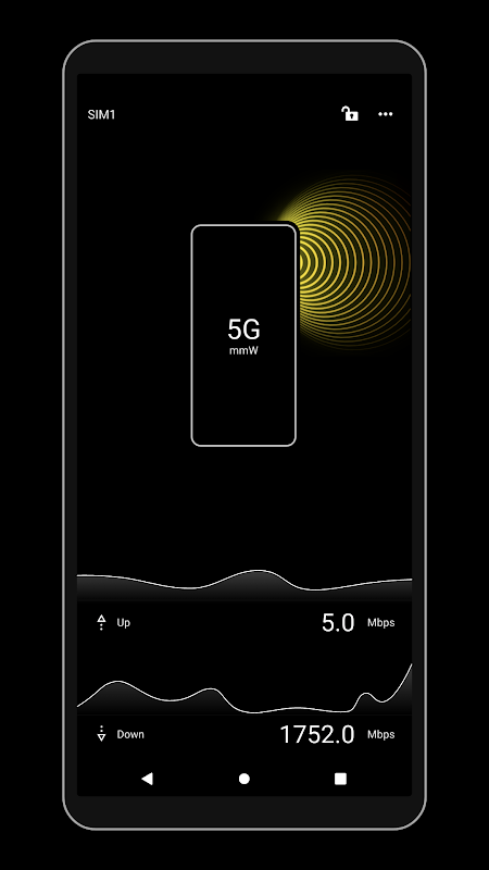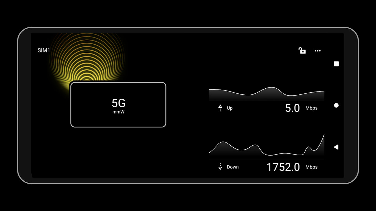 De Network Visualizer-app biedt informatie over de communicatiesnelheid, de communicatiemethode en de richting van een 5G mmWave-verbinding. U kunt de communicatiestatus visueel controleren en zien of de gegevensoverdracht is onderbroken tijdens het uploaden of downloaden.