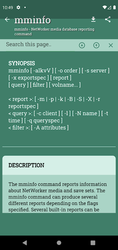 NetWorker commands have been designed to make searching for commands easy. No hassle of searching for the Command Reference guide on your PC or running through all the commands to get to what you need. This app is aimed to make this a tale of the past. The frequently accessed commands are added to the cache so that you will be able to access them even though you don't have access to the Internet, this is very common when you are inside a data-center. The app currently contains all the NetWorker core commands, we will keep it updated and will be adding the NetWorker module relevant commands as well.