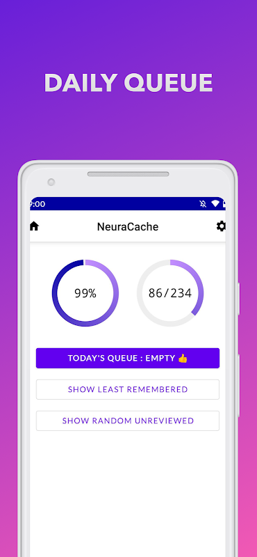Wanneer de tijd daar is, zullen NeuraCache-algoritmen u vragen om een eerste beoordeling van de notitie/hoogtepunt - "Hoeveel weet u nog?"