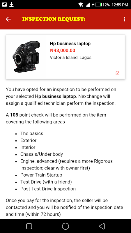 U kunt een verzoek voor een inspectie van een item dat moet worden gekocht en Nexchange zullen professioneel uitvoeren van een gedetailleerde inspectie van het item.