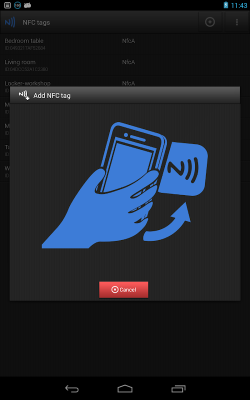 Please note that your screen will have to be on for the phone to be able to scan the NFC tags. There is a limit in the Android operation system and cannot be changed within the application.