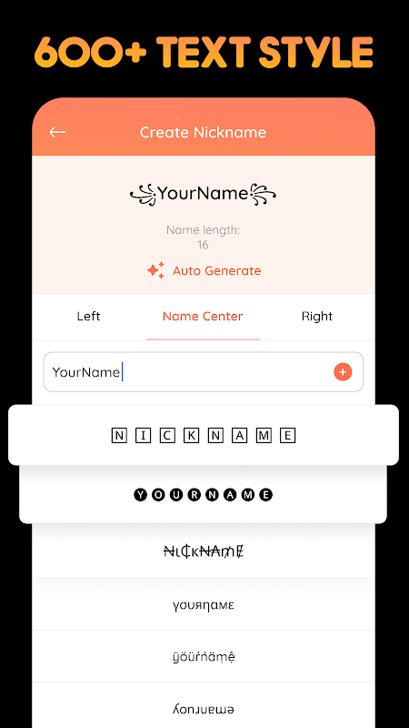 Make nickname & name editor is app nickname maker easy with one button with 500+ fonts, themes, avatar, emojis, symbols.