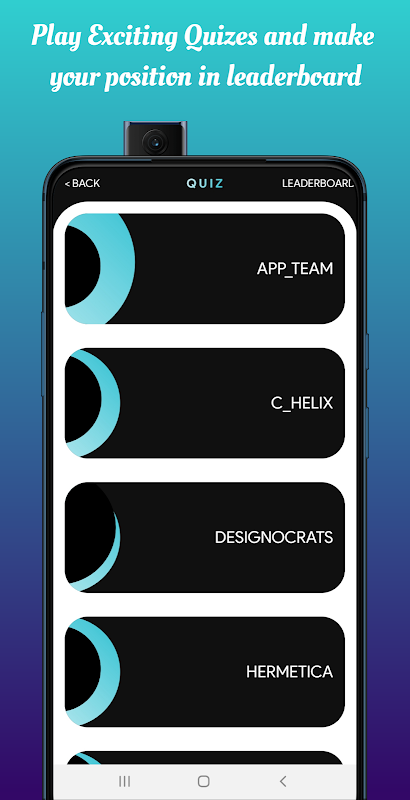 1. Ondanks het feit dat er informatie wordt gegeven met betrekking tot het feest, is er een opwindende functie in de app die de meeste gebruikers aantrekt, namelijk de quiz. De quiz is afdelingsgericht. De student die bovenaan het scorebord staat, is de winnaar.