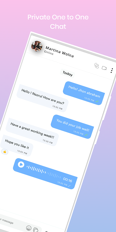 Naadloze één-op-één berichten: 💬📱 Ervaar naadloze één-op-één berichten als nooit tevoren! Maak moeiteloos contact met vrienden, familie en collega's met onze intuïtieve berichten-app op Google Play. Deel uw gedachten, foto's en momenten in realtime met een bliksemsnelle levering. Laat jezelf zien met een breed scala aan emoji's, stickers en GIF's. Blijf altijd en overal verbonden met ons betrouwbare en veilige platform. Download nu en begin met chatten in stijl! 🚀