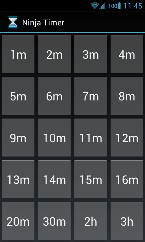 Deze app is een eenvoudige timer waarmee u snel aan de slag een countdown in uw drukke leven. Moe van het specificeren minuten elke keer dat u wilt een pizza koken? Klik gewoon op een van de voorkeuzetoetsen en het zal een alarm afgaan wanneer de tijd om is. Lange druk op een knop om de waarde te veranderen en klik op de kennisgeving aan het aftellen te annuleren. Ninja Timer omvatten 3 widgets, ondersteunt meerdere gelijktijdige countdowns en laat u de volgende voorkeuren: