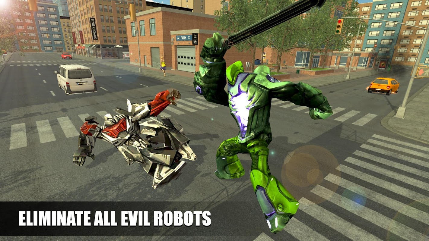 - High quality HD graphics with realistic futuristic city robot war animations.
