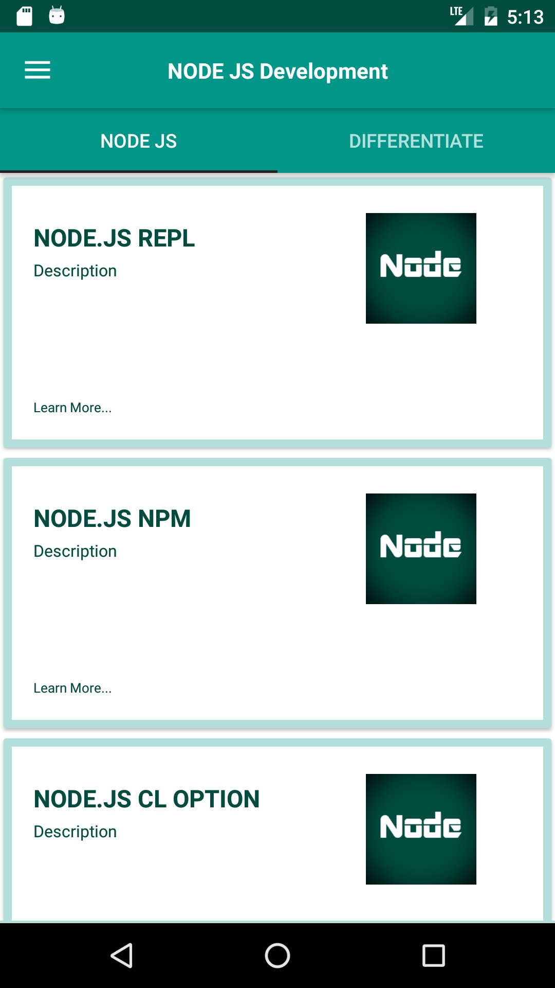 So, download this tutorial app and learn node.js offline.