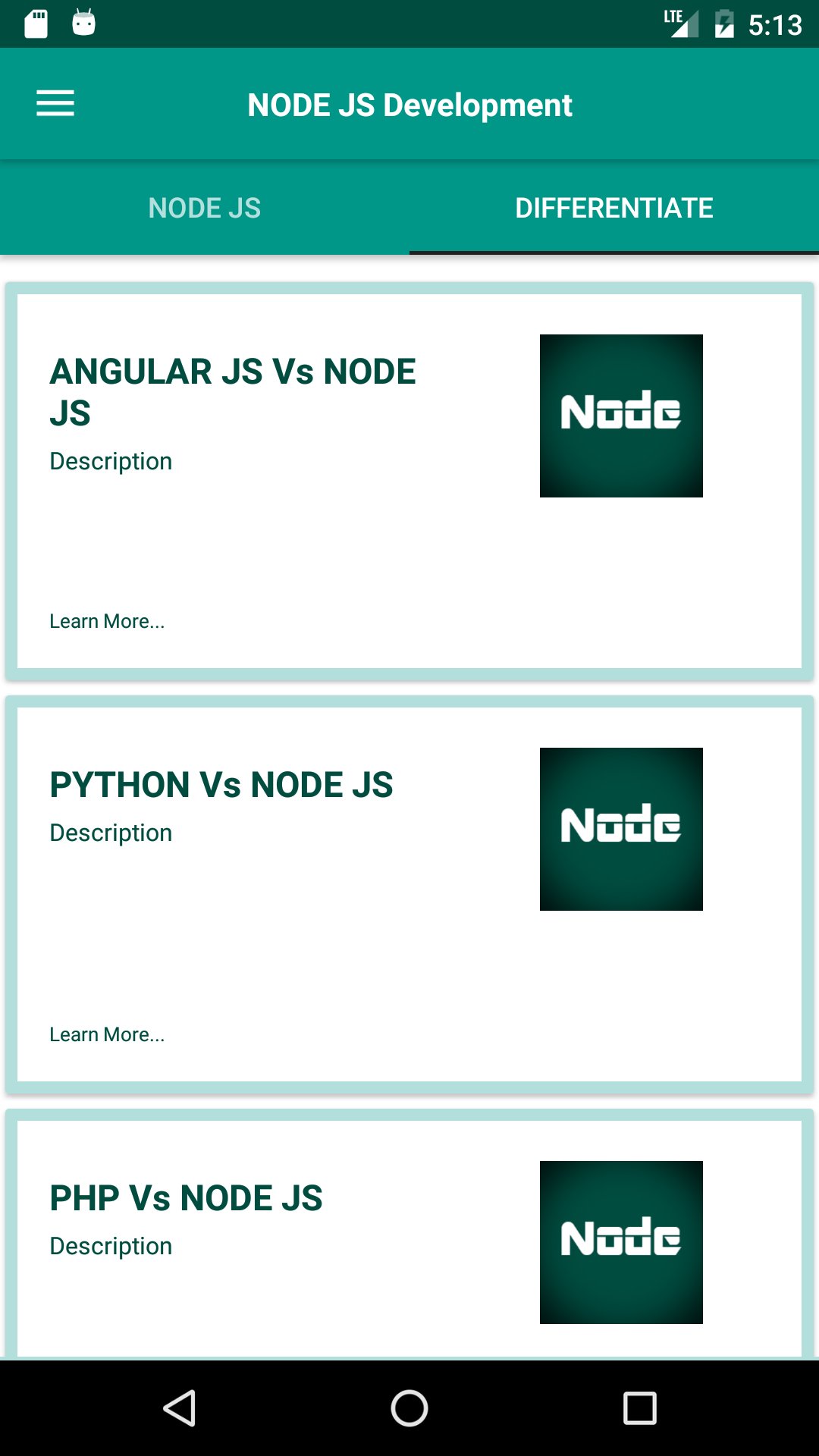 This app helps you to learn node.js easily as a guide to node js tutorial. Node.js is the most influential technologies in the Web development, we cover the basic topics as follows,