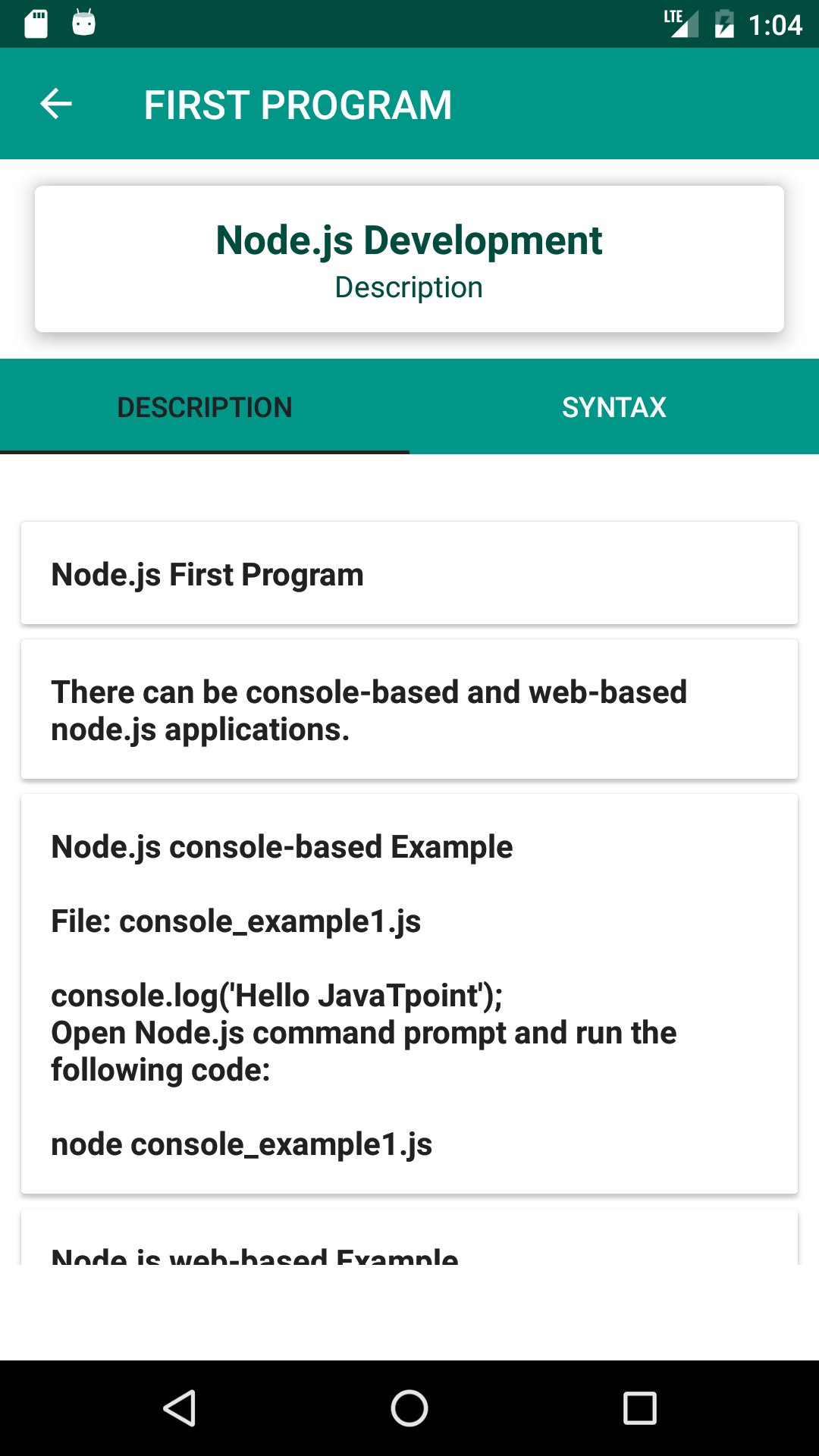 Node JS - Node JS Tutorial APK -informatie
