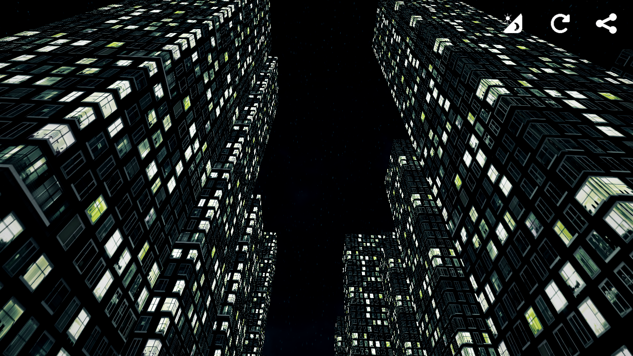 Wanneer je door de stad vliegt, projecteer je individuele beelden op de wolkenkrabbers, die automatisch met de camera vanuit je omgeving worden vastgelegd.