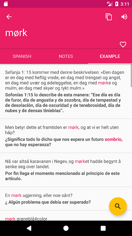 ♦ Zoekoptie werkt op zowel Spaans - Noors en Noors - Spaans richtingen.