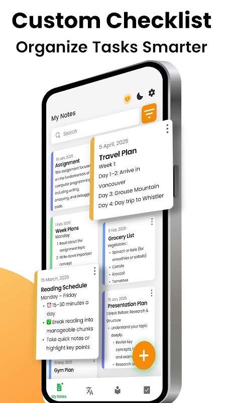 Vertaal eenvoudig elke taalvertaling gratis naar de wereld en creëer taal in die taal. Spraaknotitieblokaanbieding om audionotities te maken met de lokale taal of een vreemde taal met de beste functies voor het vertalen van talen. Met de notitiemaker voor taalvertalers kunt u woorddetails vinden met een tekstwoordenboek en een spraakwoordenboek-app. Kladblok voor Android met vertaler voor wereldtaal maakt het mogelijk om goede notities in elke taal te maken en notitieboeken in verschillende talen te krijgen met dezelfde betekenis maar verschillende talen. Schrijf een notitie met mijn aantekeningendagboek en vertaal gratis naar alle talen en kopieer die herinneringen met de app voor het maken van notities. Tekst naar spraak en maak goede notities met Kladblok waarop u kunt schrijven voor gratis herinneringen en lijsten met lijstmakers om uw taken op tijd uit te voeren. Als je iets bent vergeten, maak je dan geen zorgen, gebruik de woordenboek-app voor spraakkladblok. Met de gratis app voor het maken van notities kunt u uw woord schrijven of spreken voor notities van de lijstmaker voor notities en kunt u genieten van de checklist voor plaknotities.