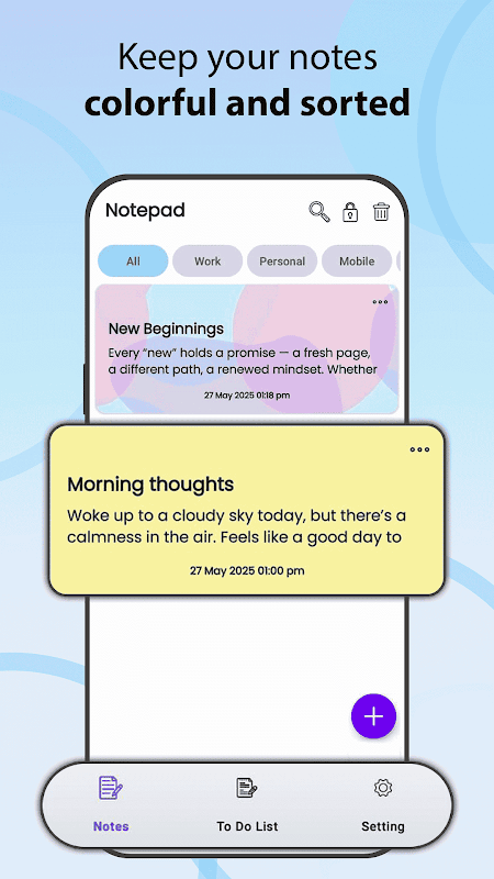 Organiseer je ideeën, taken en dagelijkse gedachten eenvoudig met Kladblok - Notities, Notitieblok, Memo — een snelle en eenvoudige notitie-app die is ontworpen om je productief te houden. Of je nu snel aantekeningen maakt, lijsten maakt, afbeeldingen opslaat of gesproken memo's opneemt, deze app heeft alle tools die je nodig hebt op één plek.
