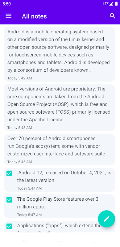 Taking good notes in busy schedules are easier with different options provided by Notepad. Take quick notes, to-do lists, quick memos, voice notes etc. is designed to take fast and simple notes like typing a message. Additionally, the app can be used as a planner for an effective day.