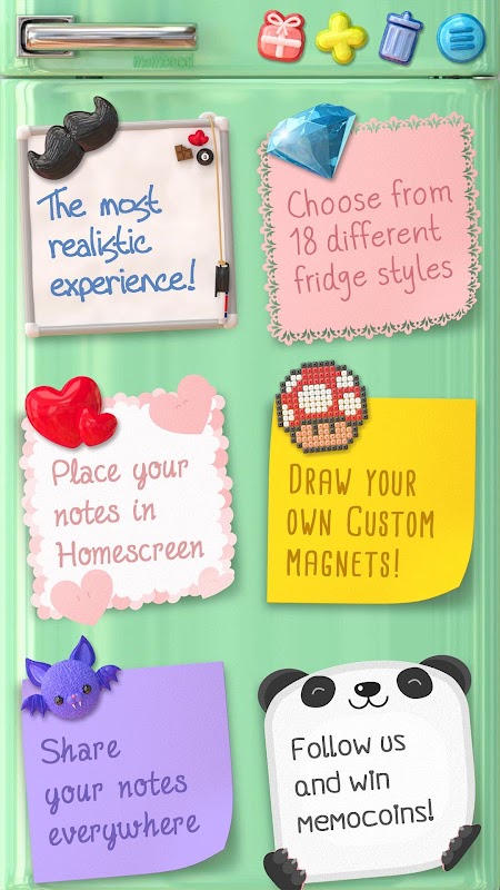 Opmerking & plak uw ideeën op een unieke manier met MemoCool, de grappigste kladblok app!