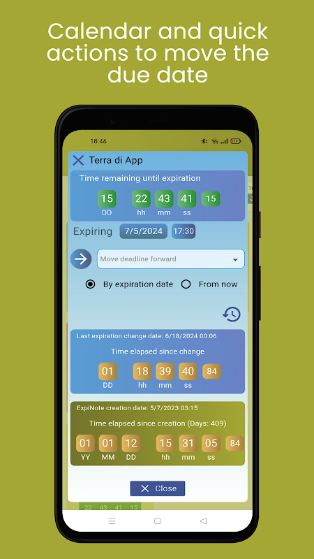Met ExpiNotes kunt u notities maken met aangepaste deadlines, wat een efficiënte manier biedt om de resterende tijd of de tijd die al is verstreken te controleren. Met een eenvoudige en intuïtieve interface kunt u uw taken beheren zonder belangrijke details te missen.