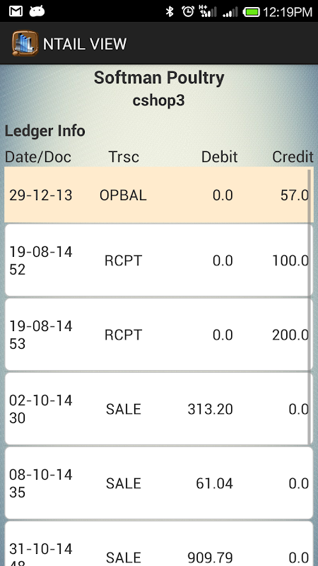 Android Mobiele applicatie voor Pluimvee Retailers om Sales en Receipts Trsc bekijken