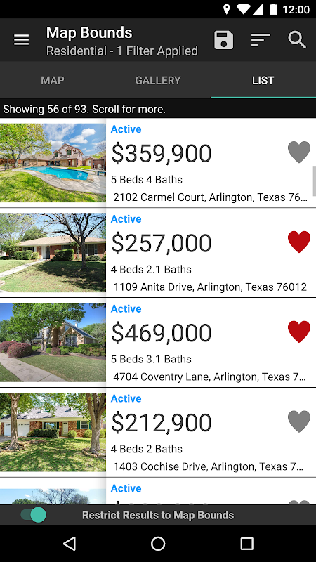 Consumers and agents are bothable to quickly locate listings via GPS location-based technology, search bydrawing a custom shape on the map and then narrow it down further by aselection of filters. Properties can be saved to favorites as well as sharedvia text/email/Facebook or Twitter!