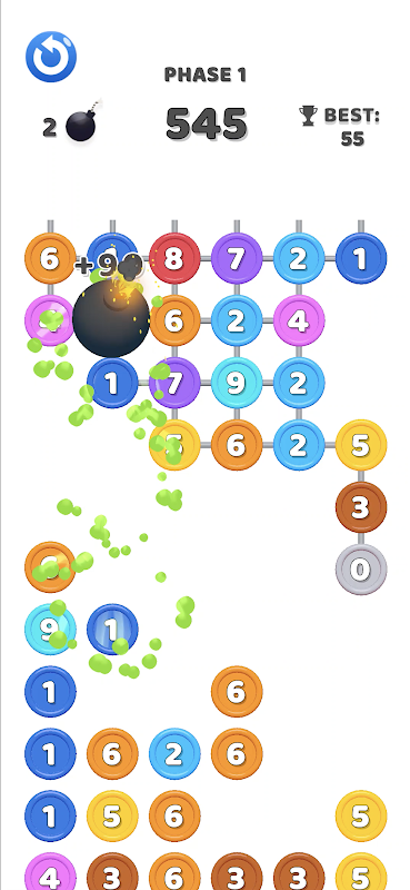 Koppel cirkels en krijg er 10! Verbreek de links en maak het rooster leeg!