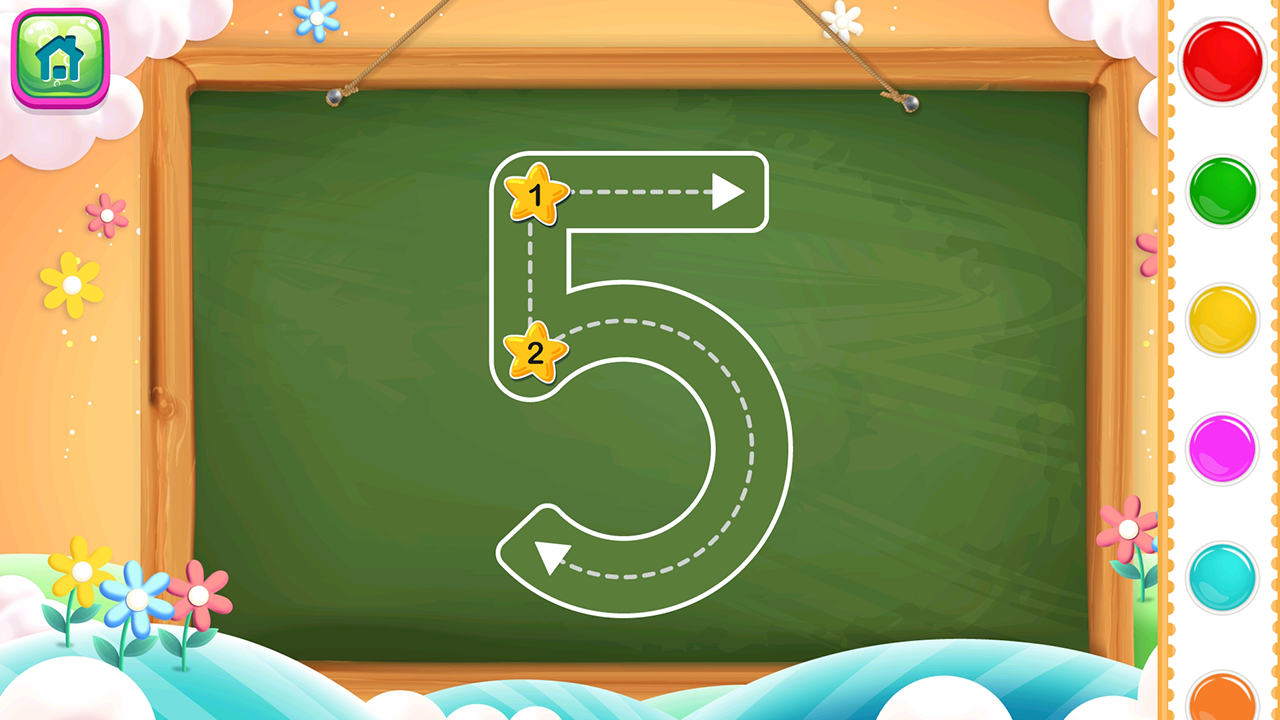 Kinderen kunnen de gegeven pijl volgen om de nummers gemakkelijk te traceren. Voorschoolse kinderen kunnen de cijfers gemakkelijk schrijven door de cijfers te leren met tracering. Als u op zoek bent naar een app met de beste cijfers, dan is dit de beste app voor kinderen. Tel en leer de cijfers met plezier. Het is als een teken- en leerconcept, zodat kinderen de nummers met interesse en zonder ondersteuning kunnen traceren en schrijven.