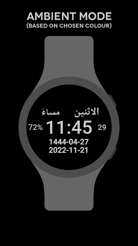 Numerieke Arabische wijzerplaat is een Arabische wijzerplaat met Ummul Qura Hijri-datum en Gregoriaanse datum, evenals een stappenteller. Deze app is ontworpen voor Wear OS-smartwatches.