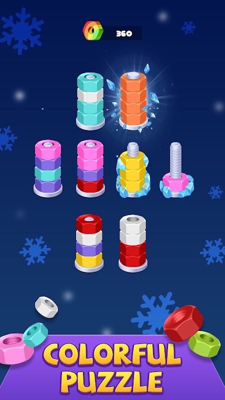 Welkom bij Nut Sort - Color Sort Puzzle, een wereld waar elke bout een hersenkraker is. Jouw missie? Bouten losdraaien, ze op kleur sorteren en ze in perfecte kolommen van 4 stapelen. Klinkt simpel? Denk nog maar eens na!